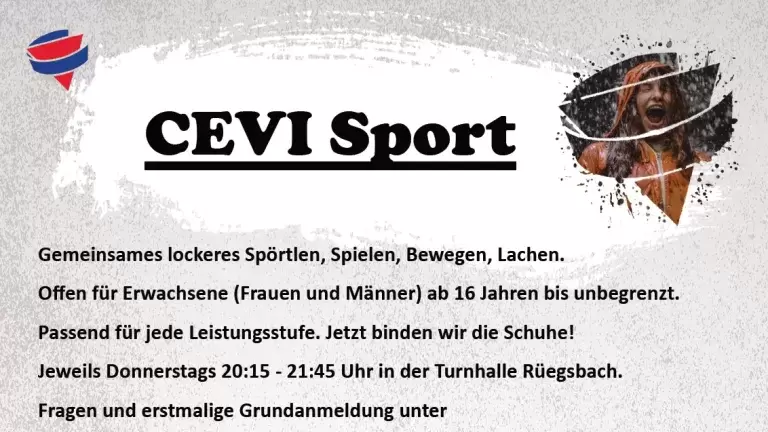 Gemeinsames lockeres Spörtlen, Spielen, Bewegen, Lachen. Offen für Erwachsene (Frauen und Männer) ab 16 Jahren bis unbegrenzt. Passend für jede Leistungsstufe. Jeweils am Donnerstagabend in der Turnhalle Rüegsbach.